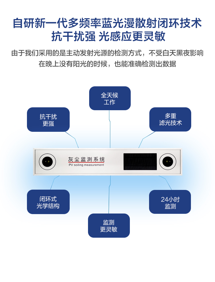LC-HC1灰塵監(jiān)測(cè)系統(tǒng)主要用于太陽(yáng)能發(fā)電場(chǎng)的光伏陣列中,安裝在光伏板的框架上。該系統(tǒng)能夠?qū)崟r(shí)監(jiān)測(cè)電站表面的灰塵積累情況,通過(guò)智能化數(shù)據(jù)分析,為電站清潔維護(hù)提供科學(xué)依據(jù)。適用于各類規(guī)模的光伏電站,無(wú)論是大型集中式還是分布式電站,都能有效提升電站發(fā)電效率,降低運(yùn)維成本,是光伏行業(yè)不可或缺的智能管理工具。