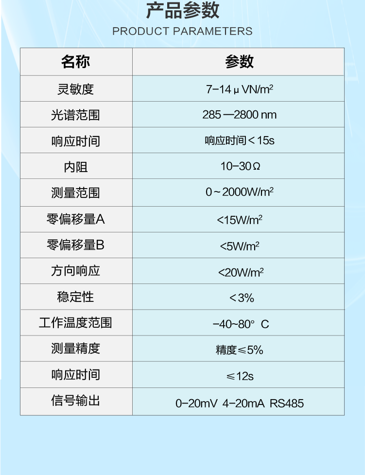 TBQ-2LJ總輻射傳感器(光電)是一種用于測量太陽輻射等電磁輻射的儀器。該表由一個光電二極管、一個濾光器和一個電路組成。在使用時,將儀器暴露在太陽下,太陽光經過濾光器后照射在光電二極管上,產生電流信號,電路通過放大電流信號并計算即可得到總輻射值。該儀器廣泛應用于氣象、農業、環境等領域,用于測量太陽輻射、土壤表面輻射等指標,具有測量準確、數據處理方便等優點。